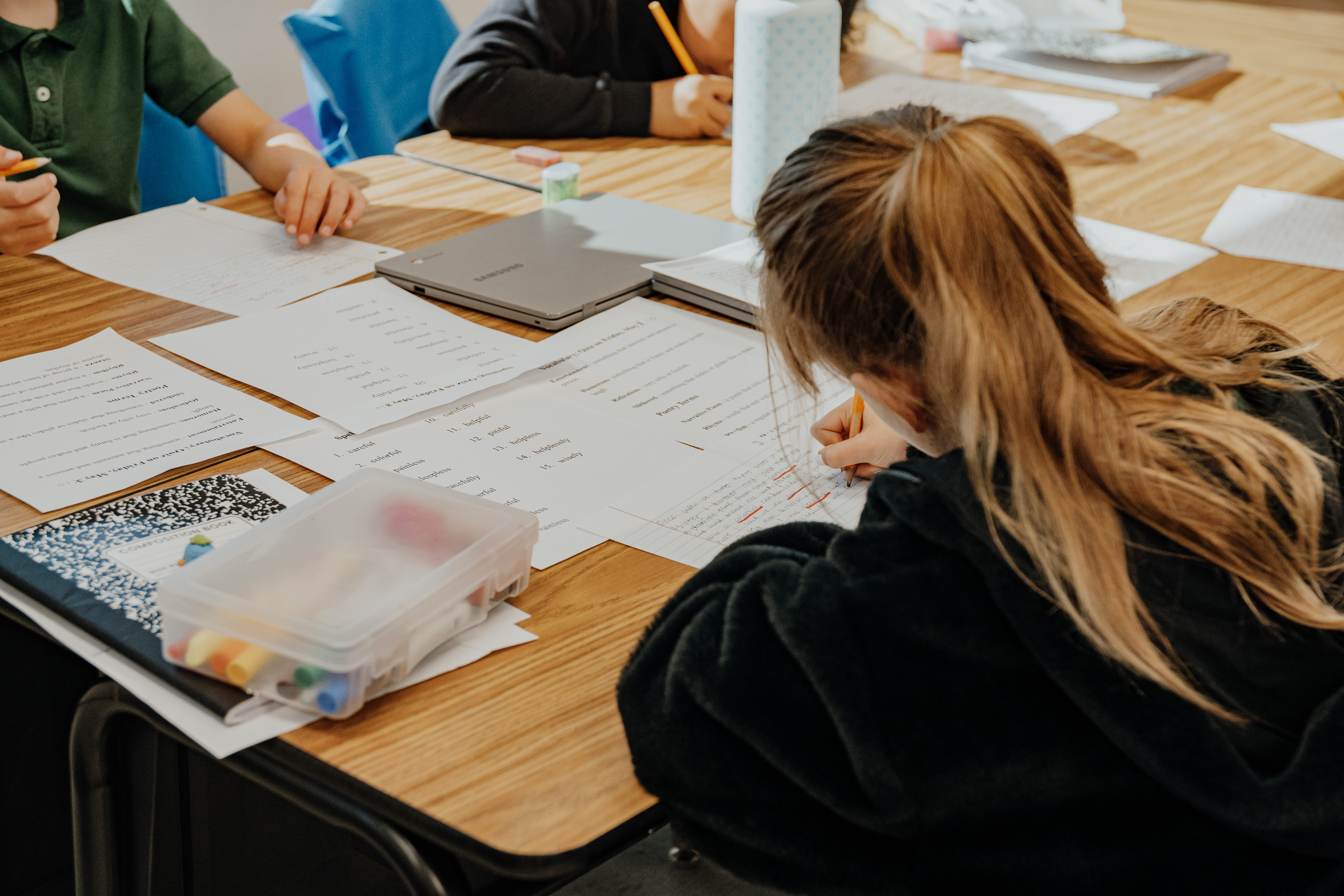 Our new junior high school class structure allows students to experience changing classes and exploring electives like art, photography, media news, 3-d design, computer science, life skills, gardening, and more.